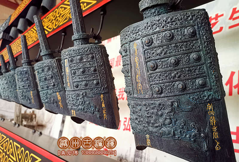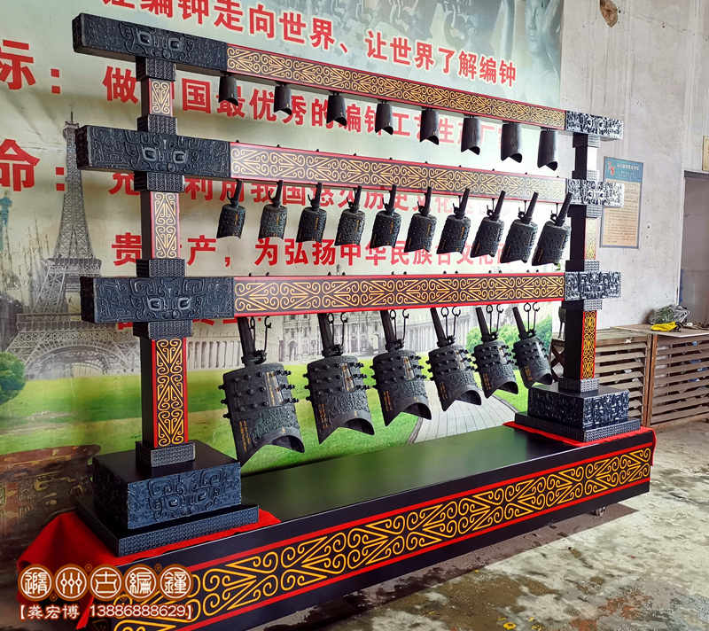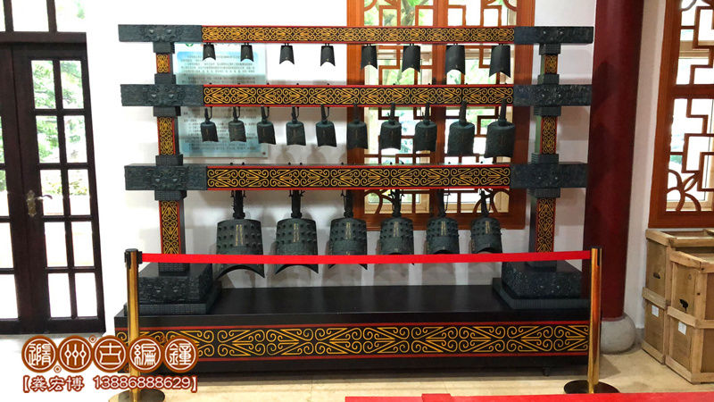 簡介:隨州古編鐘公司按客戶要求定制生產(chǎn)的24件編鐘(南樂歌鐘),編鐘為錫青銅鑄造并按442Hz調(diào)音,分3層懸掛方式排列,音階達3個半八度,可以演奏古今中外樂曲,可以和任何樂器搭配演奏。