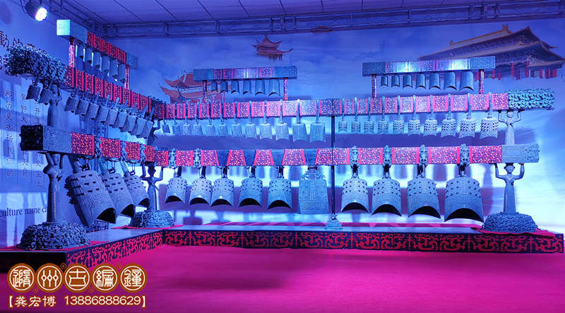 65件曾侯乙編鐘3/4比例,是隨州古編鐘公司根據(jù)曾侯乙編鐘縮小比例制作而成,編鐘、佩劍銅人、梁套和圓座等配件為錫青銅鑄造,編鐘采用國際標(biāo)準(zhǔn)樂音音高A=440Hz調(diào)音,音域達(dá)五個半八度,可以旋宮轉(zhuǎn)調(diào)演奏古今中外樂曲,編鐘大梁采用優(yōu)質(zhì)松木制作,表面噴漆,彩繪花紋;另配有保管編鐘用的舞臺專用包裝箱,便于運(yùn)輸和儲存。